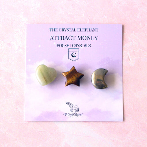 Includes a Pyrite Moon, Green Aventurine Heart, and Tiger’s Eye Star.
