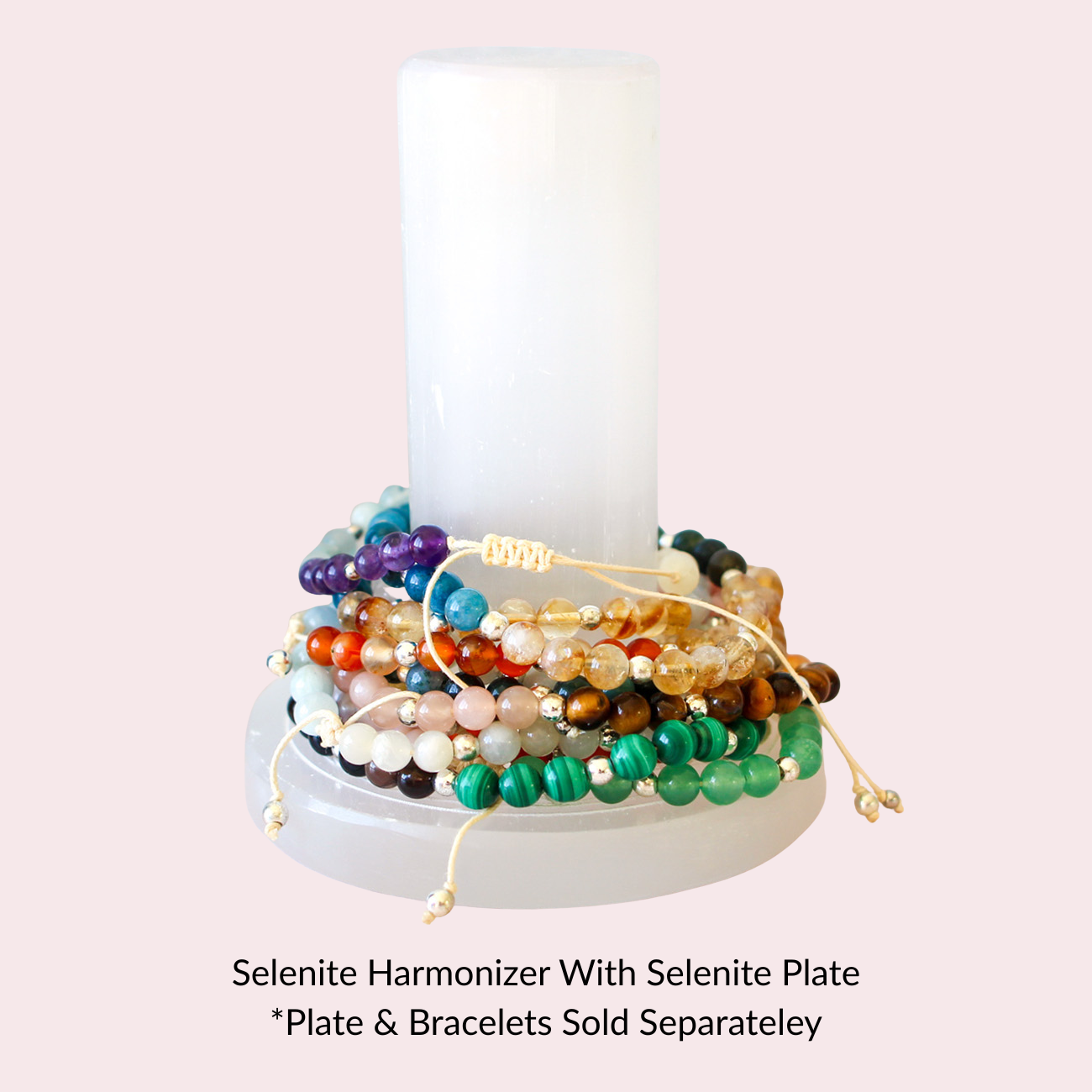 Each Selenite Harmonizer is meticulously crafted from premium quality Selenite crystals, known for their purifying and energy-enhancing properties. With their sleek and elongated shape, these harmonizers are designed to effortlessly channel and balance energies, providing an optimal environment for your crystal bracelets.